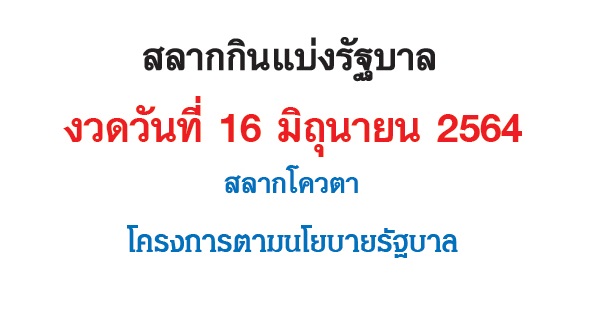ตรวจหวย งวดวันที่ 16 มิถุนายน 2564 ล่าสุด โดยการออกสลากกินแบ่งรัฐบาล ออกเวลา 14.30 น.